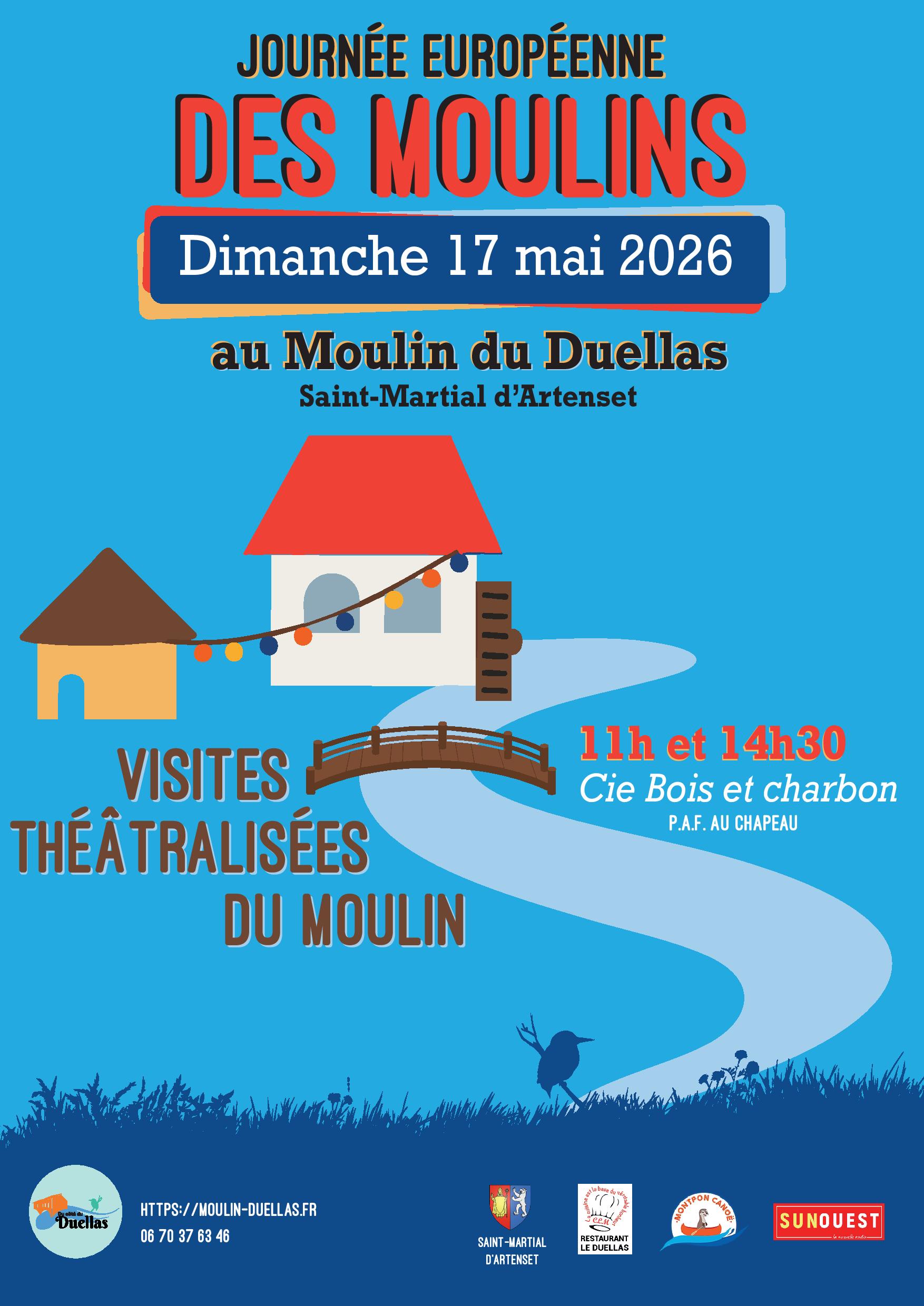 Journée des moulins au moulin du Duellas -Visites théâtralisées du moulin à 11h et 14h30 par la Compagnie Bois et Charbon, entrée au chapeau - 06 70 37 63 46
