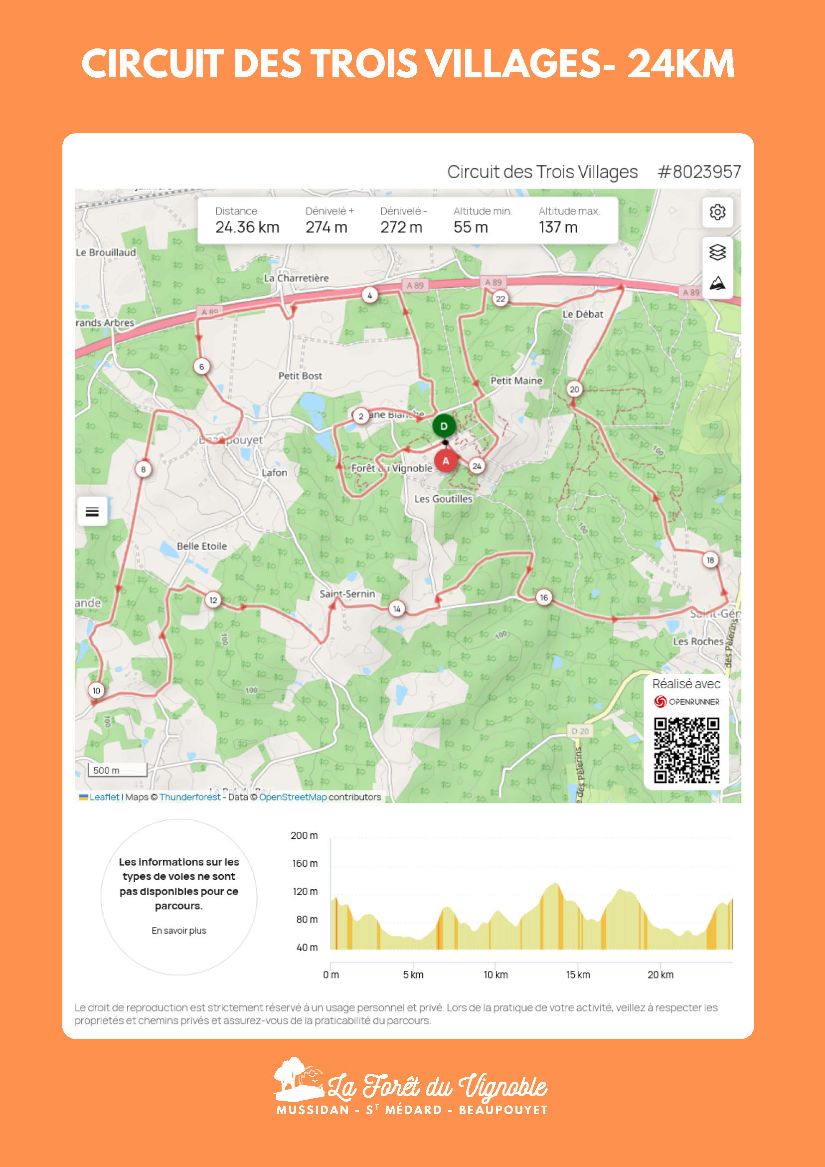 Circuit de 24 km au départ de la Forêt du Vignoble balisée en bleu.