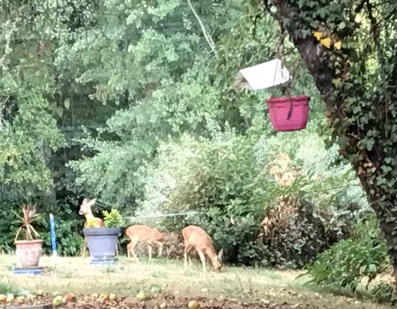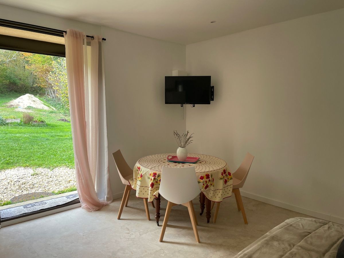 Le salon de jardin permet de prendre le petit-déjeuner dans un cadre naturel paisible. Du jardin, il est possible de voir des biches passer le soir et le matin.