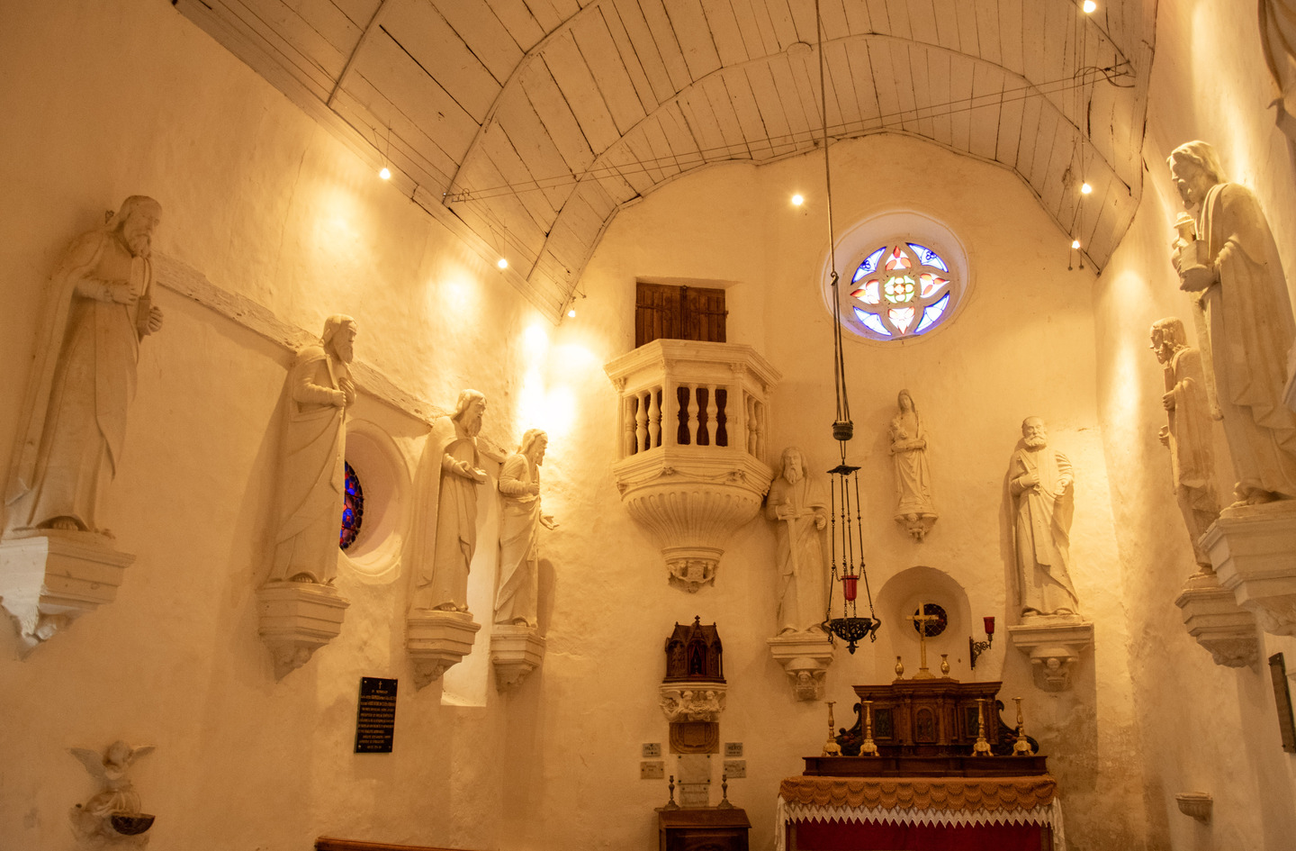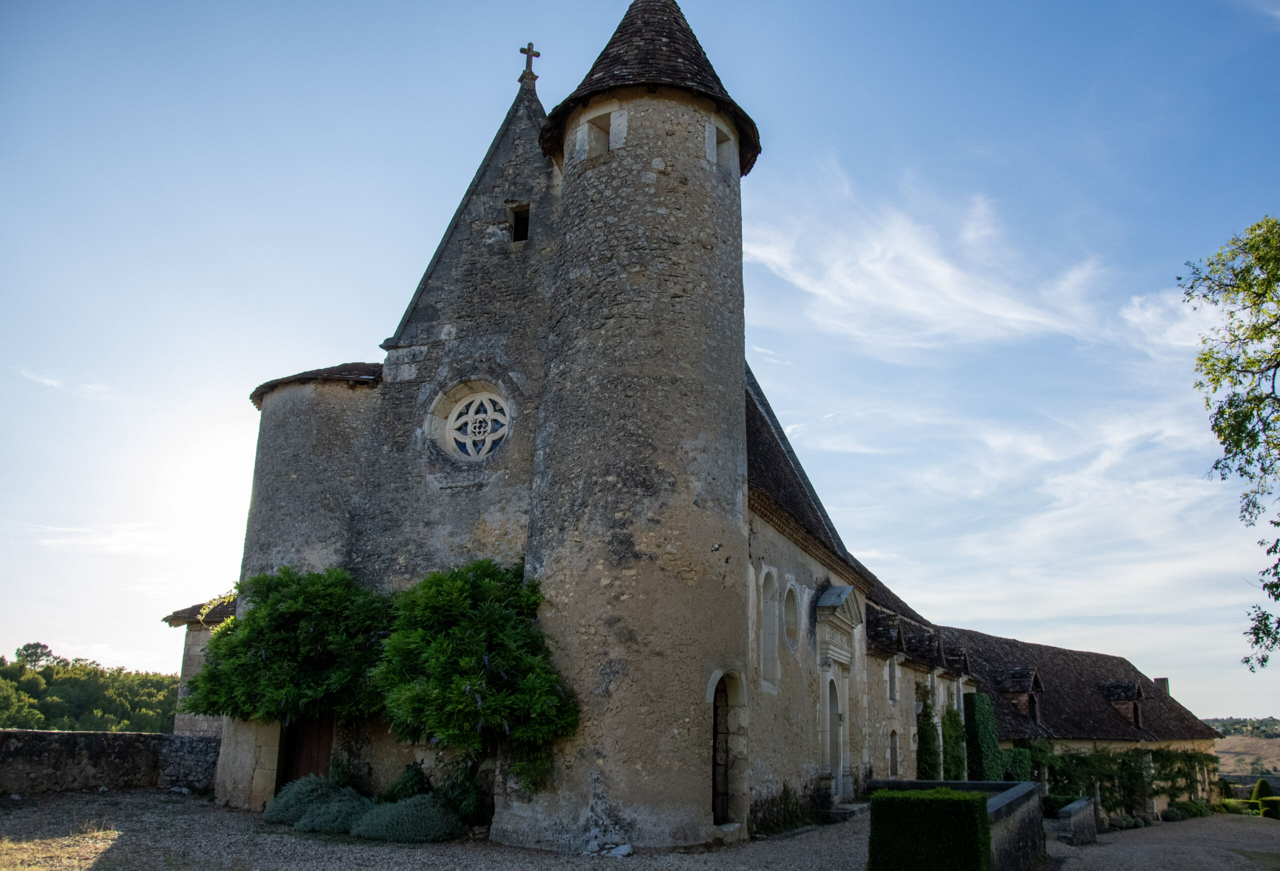 Château privé, il vous ouvre ses portes pour découvrir sa chapelle et ses statues uniques grandeur nature, son souterrain (escalier et salle voutés, grotte naturelle), sa double enceinte de remparts avec ses jardins remarquables à la française et de roses blanches, ses salons ainsi que sa curieuse bibliothèque circulaire.